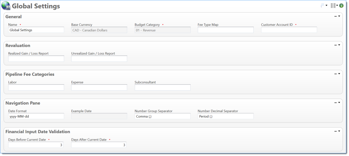 Budget Category | Select a budget category. This is the default for your environment and is used when projects have a setting that only one budget category is responsible for all the revenue. |