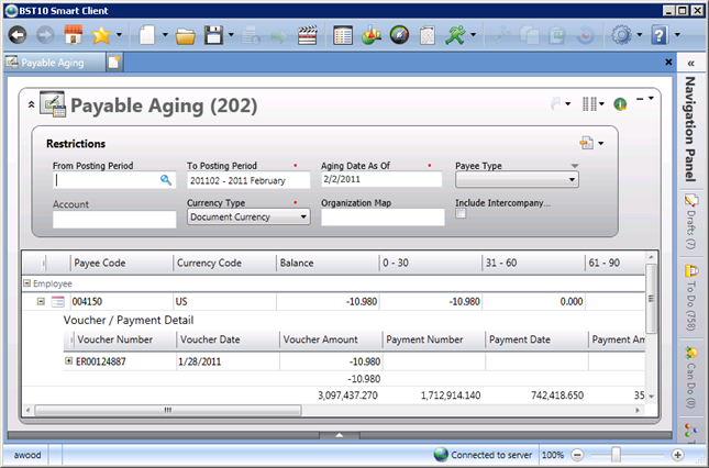 Inquiries display on the BST11 content pane. For information on how to open and run an inquiry, see How to Use an Inquiry. For additional information about the general functionality of the content pane, see Content Pane Overview.